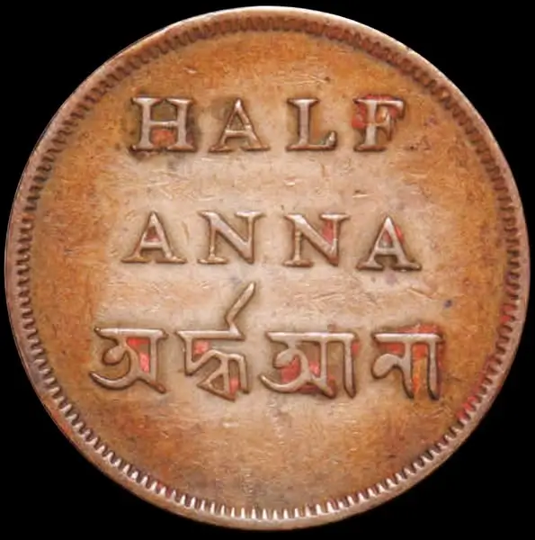 Bengal Presidency, Copper Half Anna Calcutta Mint Excellent Detail Uncleaned