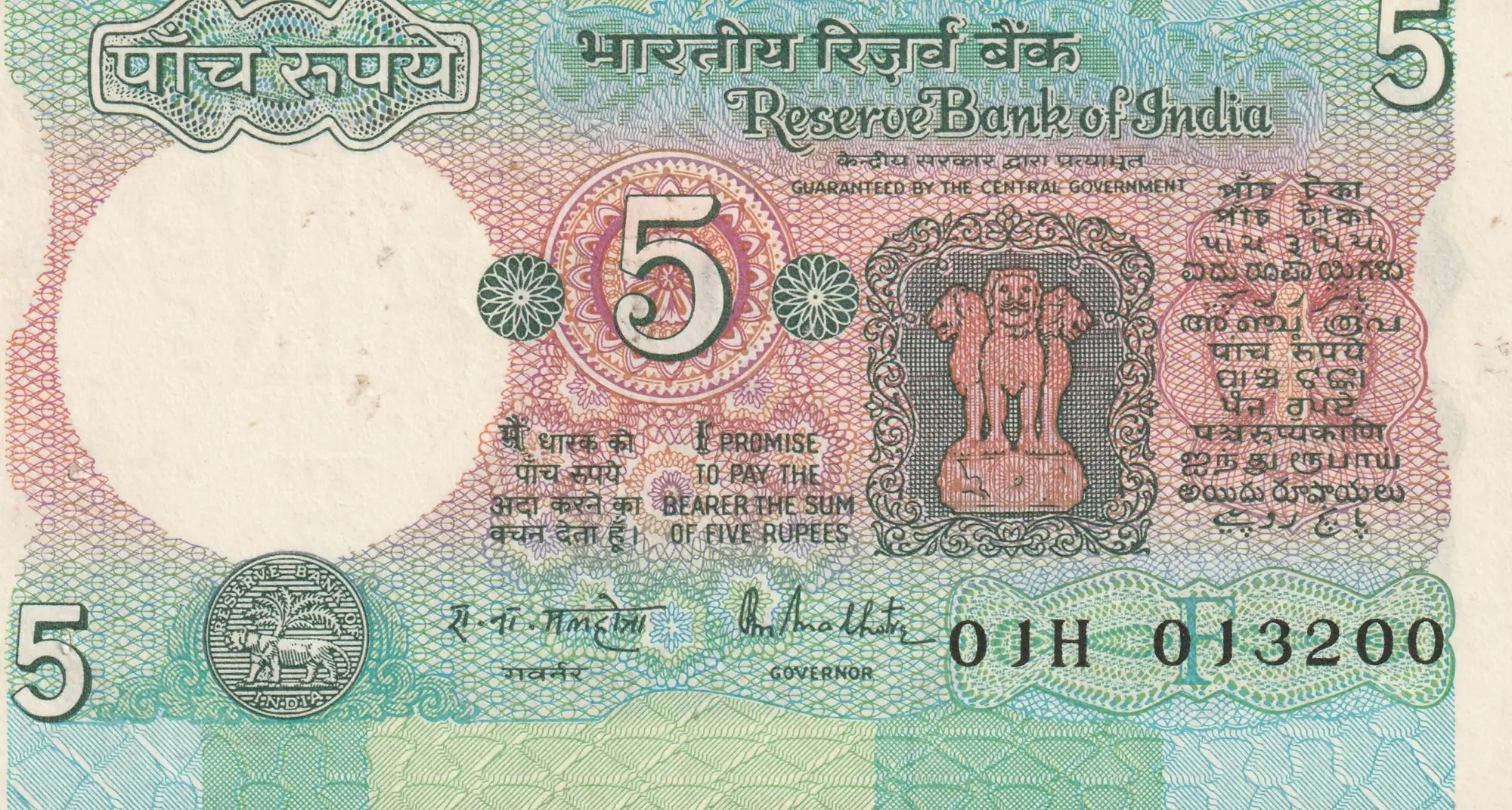 Error UNC Five Rupee Old Issue R N Malhotra Shifted Error Republic India
