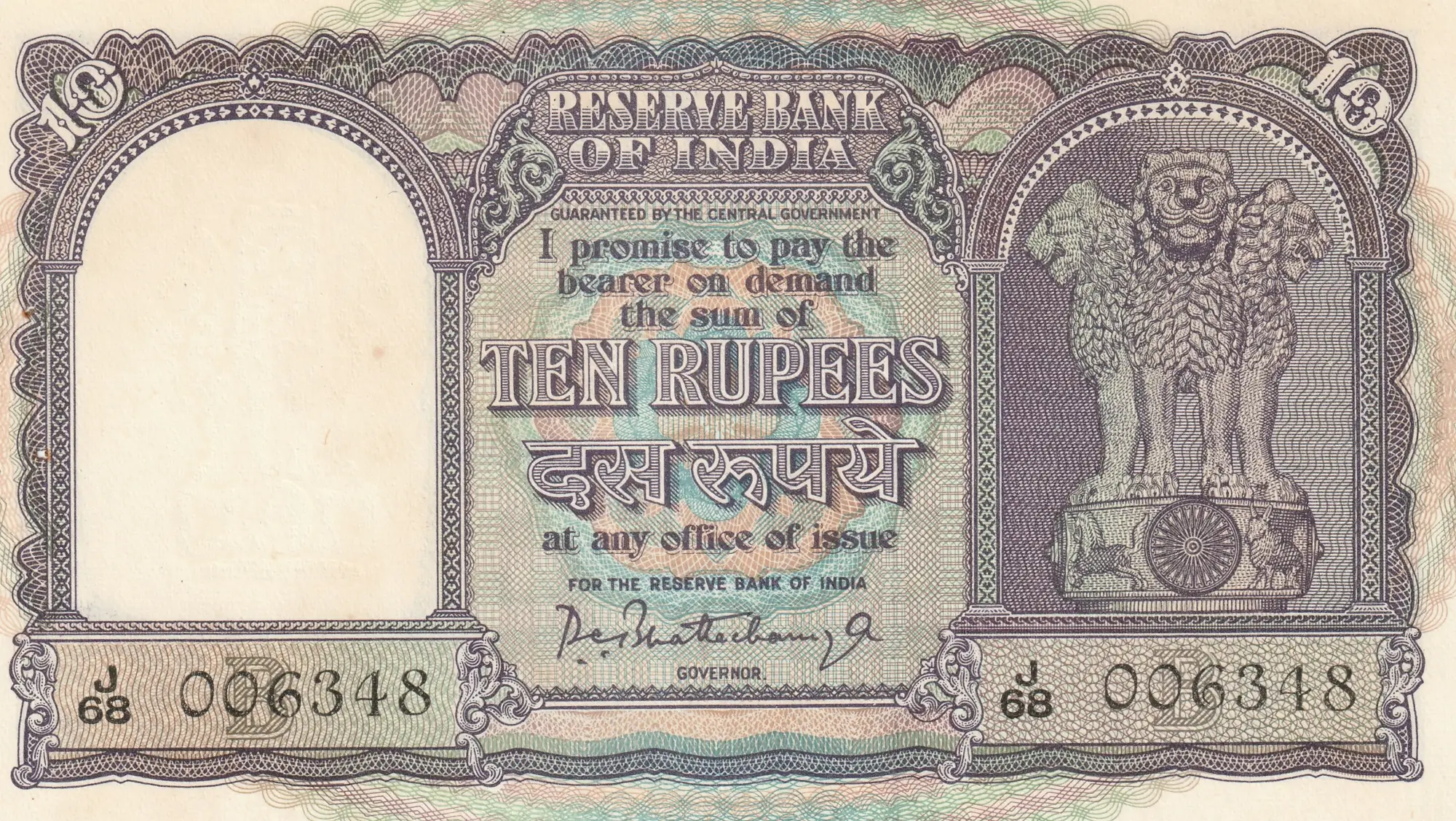 UNC 1962 10 Rupees M29 171354 P.C. Bhattacharya Republic India Paper Money